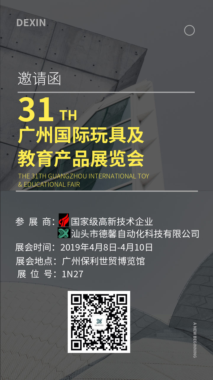 第31屆廣州國際玩具展,德馨自動(dòng)化科技誠邀您的光臨與指導(dǎo)!